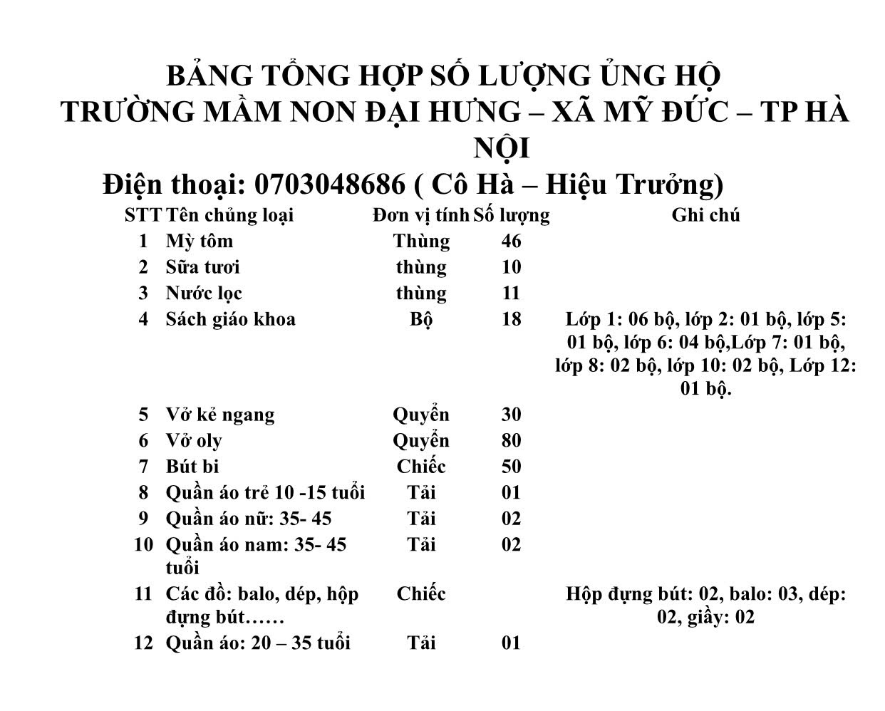 12/10/2025 A- A A+ | Trường Mầm Non Đại Hưng chung tay ủng hộ Đồng Bào vùng lũ lụt Xem Chia s? ❤️TẤM LÒNG SON SẮT CỦA NGƯỜI GIEO MẦM🍀🍀🍀: TRƯỜNG MẦM NON ĐẠI HƯNG CHUNG TAY ỦNG HỘ ĐỒNG BÀO LŨ LỤT 🌪️🌪️🌪️Những ngày qua, thông tin về tình hình mưa lũ phức tạp tại các tỉnh trong nước đã chạm đến trái tim của mỗi người dân Việt Nam. Thiệt hại nặng nề về người và của khiến cuộc sống của hàng nghìn gia đình lâm vào cảnh khó khăn chồng chất.💨 🌊 ♦️Thấu hiểu và sẻ chia sâu sắc với những mất mát, đau thương ấy, tập thể cán bộ, giáo viên, nhân viên Trường Mầm non Đại Hưng đã nhanh chóng phát động và triển khai chương trình quyên góp, ủng hộ đồng bào vùng lũ lụt. 📣📣Hành Động Từ Trái Tim Gieo Mầm Mặc dù là những người làm công tác nuôi dưỡng và chăm sóc thế hệ tương lai, nhưng đội ngũ cán bộ, giáo viên và nhân viên Trường Mầm non Đại Hưng luôn mang trong mình tinh thần tương thân tương ái, sẵn sàng san sẻ gánh nặng với cộng đồng. 🔉Chương trình quyên góp đã nhận được sự hưởng ứng nhiệt tình, nhanh chóng và tự nguyện từ 100% cán bộ, giáo viên, nhân viên nhà trường. Mỗi người một chút, tất cả đã gom lại thành một món quà tinh thần và vật chất ý nghĩa. 🌟Đây không chỉ là một hành động thiết thực mà còn là minh chứng rõ nét cho đạo đức và trách nhiệm xã hội của những người "gieo mầm" tri thức và nhân cách. ♥️Kết Quả Từ Tinh Thần Đoàn Kết Chỉ sau một buổi phát động, tổng số quyên góp được từ tấm lòng của toàn thể cán bộ, giáo viên, nhân viên Trường Mầm non Đại Hưng như sau: 🌹Món quà tình nghĩa này tuy nhỏ bé nhưng chứa đựng cả tình thương và sự động viên to lớn, thể hiện tinh thần "Bầu ơi thương lấy bí cùng" của những người làm giáo dục. Số nhu phẩm thiết yếu sẽ được Nhà trường gửi đến các địa phương chịu ảnh hưởng nặng nề để khắc phục hậu quả thiên tai. Lan Tỏa Giá Trị Nhân Văn Hành động nhân ái này của đội ngũ Trường Mầm non Đại Hưng còn là một tấm gương sáng, một bài học thực tế về lòng nhân đạo. 🌻🌻Trường Mầm non Đại Hưng tin rằng, với sự chung tay của cả nước, đồng bào miền Trung sẽ có thêm sức mạnh để vượt qua mọi khó khăn, sớm ổn định cuộc sống và tiếp tục hành trình xây dựng tương lai tươi sáng.🌻🌻🌻🌻 Dưới đây là 1 số hình ảnh Tập tin đính kèm Tải về