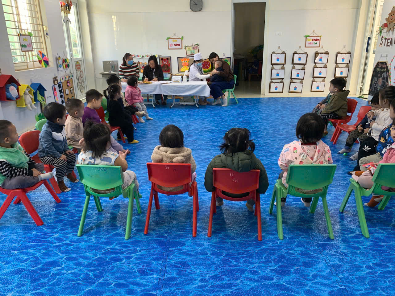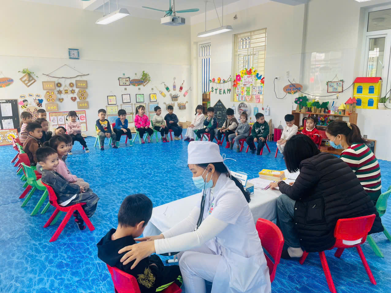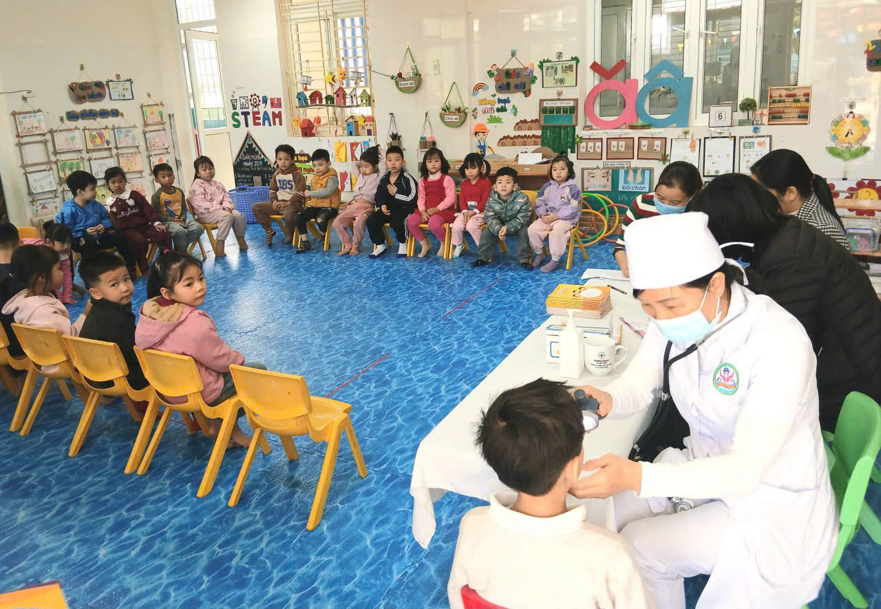 01/12/2025 A- A A+ | Trường mầm non Đại Hưng tổ chức khám sức khỏe định kỳ cho học sinh năm học 2025- 2026 Xem Chia s? 🩺 Trường Mầm non Đại Hưng: Khám Sức Khỏe Định Kỳ Cho Học Sinh Năm Học 2025 - 2026 Thực hiện kế hoạch chăm sóc và bảo vệ sức khỏe học sinh năm học 2025 - 2026, Trường Mầm non Đại Hưng đã phối hợp chặt chẽ với Điểm Trạm Y tế tổ chức đợt khám sức khỏe định kỳ lần thứ nhất cho toàn thể học sinh đang theo học tại trường. I. Mục Đích và Ý Nghĩa Hoạt động khám sức khỏe định kỳ có ý nghĩa thiết thực, nhằm: • Đánh giá sự phát triển: Theo dõi, đánh giá sự phát triển toàn diện về thể chất và tinh thần của trẻ ở lứa tuổi mầm non. • Phát hiện sớm: Kịp thời phát hiện sớm các vấn đề sức khỏe thường gặp ở trẻ như: suy dinh dưỡng, béo phì, các bệnh về mắt (thị lực), răng miệng, tai - mũi - họng... để có biện pháp can thiệp và điều trị kịp thời. • Tuyên truyền, tư vấn: Cung cấp thông tin cụ thể về tình trạng sức khỏe của trẻ cho phụ huynh, từ đó điều chỉnh chế độ dinh dưỡng, sinh hoạt và chăm sóc hợp lý tại gia đình. II. Nội Dung Khám và Thực Hiện Đội ngũ y, bác sĩ của Trạm Y tế đã tiến hành kiểm tra tổng quát cho các bé ngay tại trường với sự chuẩn bị chu đáo về cơ sở vật chất và trang thiết bị chuyên dụng. Các nội dung khám bao gồm: • Kiểm tra Thể lực: Đo Chiều cao và Cân nặng (để đánh giá tình trạng dinh dưỡng). • Khám Tổng quát: • Mắt (Thị lực) • Tai - Mũi - Họng • Răng - Hàm - Mặt (Kiểm tra sâu răng, vệ sinh răng miệng) • Tim mạch, Hô hấp và một số biểu hiện bệnh lý ngoài da thông thường. Nhà trường và các cô giáo đã phối hợp hướng dẫn các bé theo từng lớp, giúp buổi khám diễn ra nghiêm túc, khoa học và đảm bảo an toàn tuyệt đối. III. Kết Quả và Phối Hợp Sau khi hoàn tất buổi khám, Trạm Y tế và Nhà trường đã tổng hợp kết quả chi tiết cho từng học sinh. • Phần lớn các cháu đều có sức khỏe ổn định, phát triển bình thường theo lứa tuổi. • Đối với các trường hợp cần theo dõi thêm (ví dụ: có dấu hiệu sâu răng, viêm họng nhẹ, hoặc cần điều chỉnh dinh dưỡng), nhà trường sẽ gửi thông báo chi tiết đến từng phụ huynh để phối hợp thực hiện các biện pháp chăm sóc, phòng ngừa kịp thời và hiệu quả. Hoạt động khám sức khỏe định kỳ một lần nữa khẳng định sự quan tâm sâu sắc của Ban Giám hiệu nhà trường và ngành Y tế địa phương trong công tác chăm sóc và bảo vệ sức khỏe cho thế hệ mầm non. Trường Mầm non Đại Hưng mong muốn các bậc phụ huynh tiếp tục đồng hành, tích cực theo dõi và phối hợp chặt chẽ cùng nhà trường để đảm bảo các bé luôn có một cơ thể khỏe mạnh, tinh thần vui tươi để học tập và vui chơi. Mọi thắc mắc về kết quả khám sức khỏe của con, Quý phụ huynh vui lòng liên hệ trực tiếp với cô giáo chủ nhiệm hoặc cán bộ y tế học đường của trường để được giải đáp chi tiết. Dưới đây là 1 số hình ảnh của buổi khám! Tập tin đính kèm Tải về