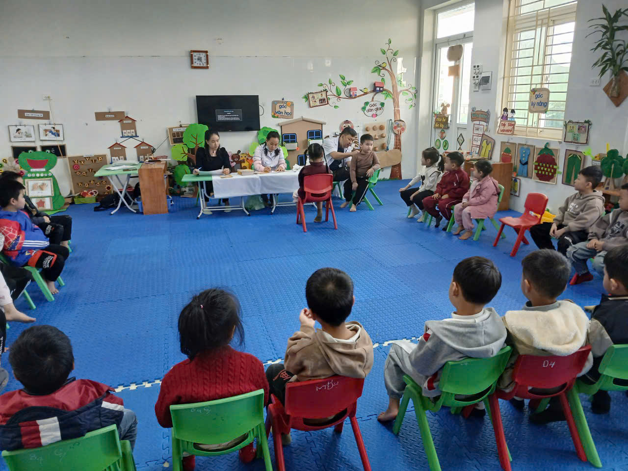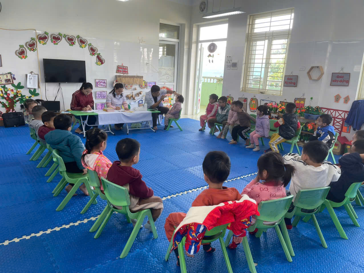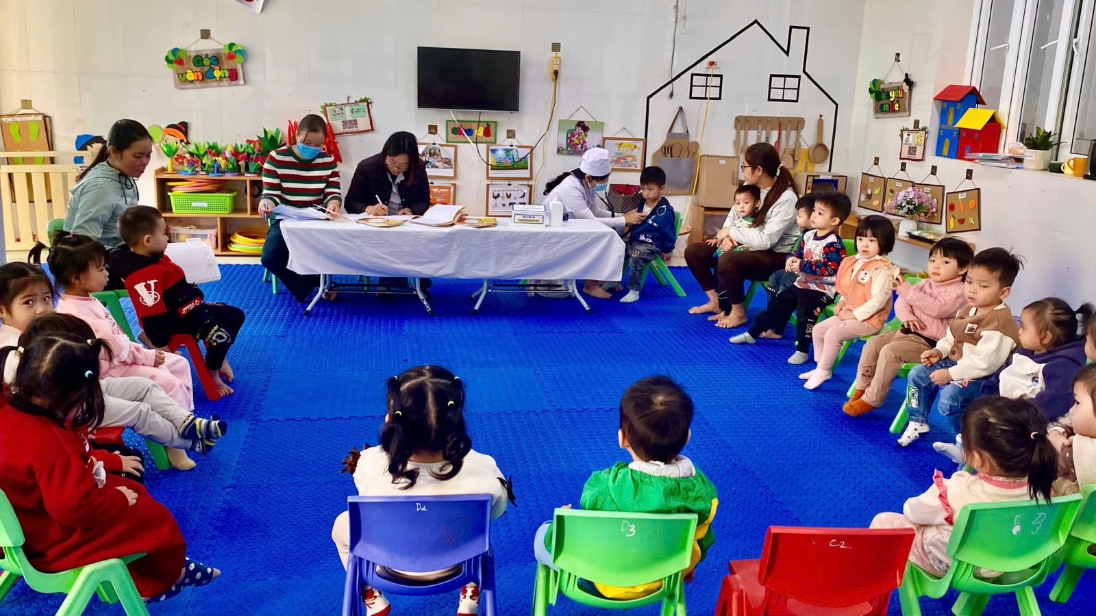 01/12/2025 A- A A+ | Trường mầm non Đại Hưng tổ chức khám sức khỏe định kỳ cho học sinh năm học 2025- 2026 Xem Chia s? 🩺 Trường Mầm non Đại Hưng: Khám Sức Khỏe Định Kỳ Cho Học Sinh Năm Học 2025 - 2026 Thực hiện kế hoạch chăm sóc và bảo vệ sức khỏe học sinh năm học 2025 - 2026, Trường Mầm non Đại Hưng đã phối hợp chặt chẽ với Điểm Trạm Y tế tổ chức đợt khám sức khỏe định kỳ lần thứ nhất cho toàn thể học sinh đang theo học tại trường. I. Mục Đích và Ý Nghĩa Hoạt động khám sức khỏe định kỳ có ý nghĩa thiết thực, nhằm: • Đánh giá sự phát triển: Theo dõi, đánh giá sự phát triển toàn diện về thể chất và tinh thần của trẻ ở lứa tuổi mầm non. • Phát hiện sớm: Kịp thời phát hiện sớm các vấn đề sức khỏe thường gặp ở trẻ như: suy dinh dưỡng, béo phì, các bệnh về mắt (thị lực), răng miệng, tai - mũi - họng... để có biện pháp can thiệp và điều trị kịp thời. • Tuyên truyền, tư vấn: Cung cấp thông tin cụ thể về tình trạng sức khỏe của trẻ cho phụ huynh, từ đó điều chỉnh chế độ dinh dưỡng, sinh hoạt và chăm sóc hợp lý tại gia đình. II. Nội Dung Khám và Thực Hiện Đội ngũ y, bác sĩ của Trạm Y tế đã tiến hành kiểm tra tổng quát cho các bé ngay tại trường với sự chuẩn bị chu đáo về cơ sở vật chất và trang thiết bị chuyên dụng. Các nội dung khám bao gồm: • Kiểm tra Thể lực: Đo Chiều cao và Cân nặng (để đánh giá tình trạng dinh dưỡng). • Khám Tổng quát: • Mắt (Thị lực) • Tai - Mũi - Họng • Răng - Hàm - Mặt (Kiểm tra sâu răng, vệ sinh răng miệng) • Tim mạch, Hô hấp và một số biểu hiện bệnh lý ngoài da thông thường. Nhà trường và các cô giáo đã phối hợp hướng dẫn các bé theo từng lớp, giúp buổi khám diễn ra nghiêm túc, khoa học và đảm bảo an toàn tuyệt đối. III. Kết Quả và Phối Hợp Sau khi hoàn tất buổi khám, Trạm Y tế và Nhà trường đã tổng hợp kết quả chi tiết cho từng học sinh. • Phần lớn các cháu đều có sức khỏe ổn định, phát triển bình thường theo lứa tuổi. • Đối với các trường hợp cần theo dõi thêm (ví dụ: có dấu hiệu sâu răng, viêm họng nhẹ, hoặc cần điều chỉnh dinh dưỡng), nhà trường sẽ gửi thông báo chi tiết đến từng phụ huynh để phối hợp thực hiện các biện pháp chăm sóc, phòng ngừa kịp thời và hiệu quả. Hoạt động khám sức khỏe định kỳ một lần nữa khẳng định sự quan tâm sâu sắc của Ban Giám hiệu nhà trường và ngành Y tế địa phương trong công tác chăm sóc và bảo vệ sức khỏe cho thế hệ mầm non. Trường Mầm non Đại Hưng mong muốn các bậc phụ huynh tiếp tục đồng hành, tích cực theo dõi và phối hợp chặt chẽ cùng nhà trường để đảm bảo các bé luôn có một cơ thể khỏe mạnh, tinh thần vui tươi để học tập và vui chơi. Mọi thắc mắc về kết quả khám sức khỏe của con, Quý phụ huynh vui lòng liên hệ trực tiếp với cô giáo chủ nhiệm hoặc cán bộ y tế học đường của trường để được giải đáp chi tiết. Dưới đây là 1 số hình ảnh của buổi khám! Tập tin đính kèm Tải về