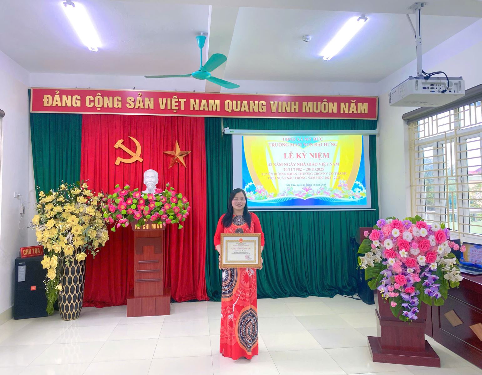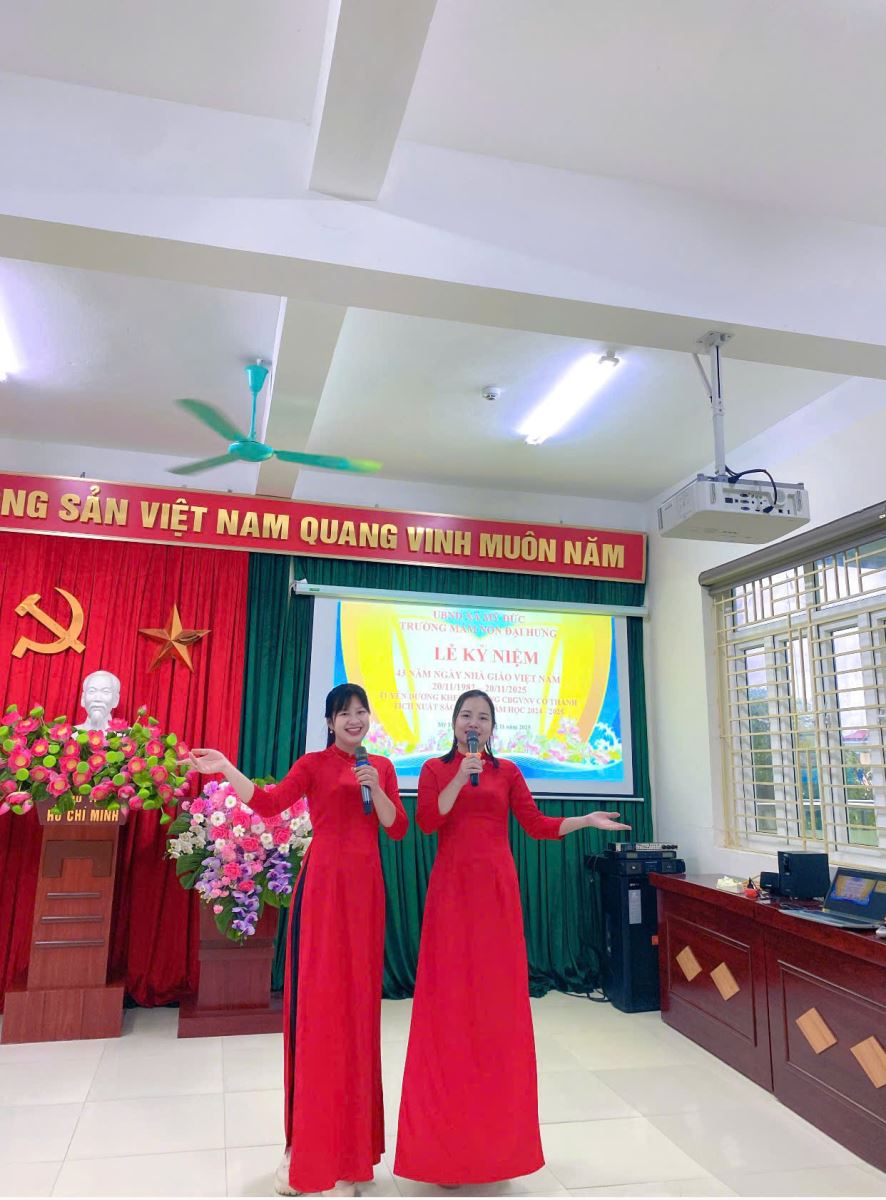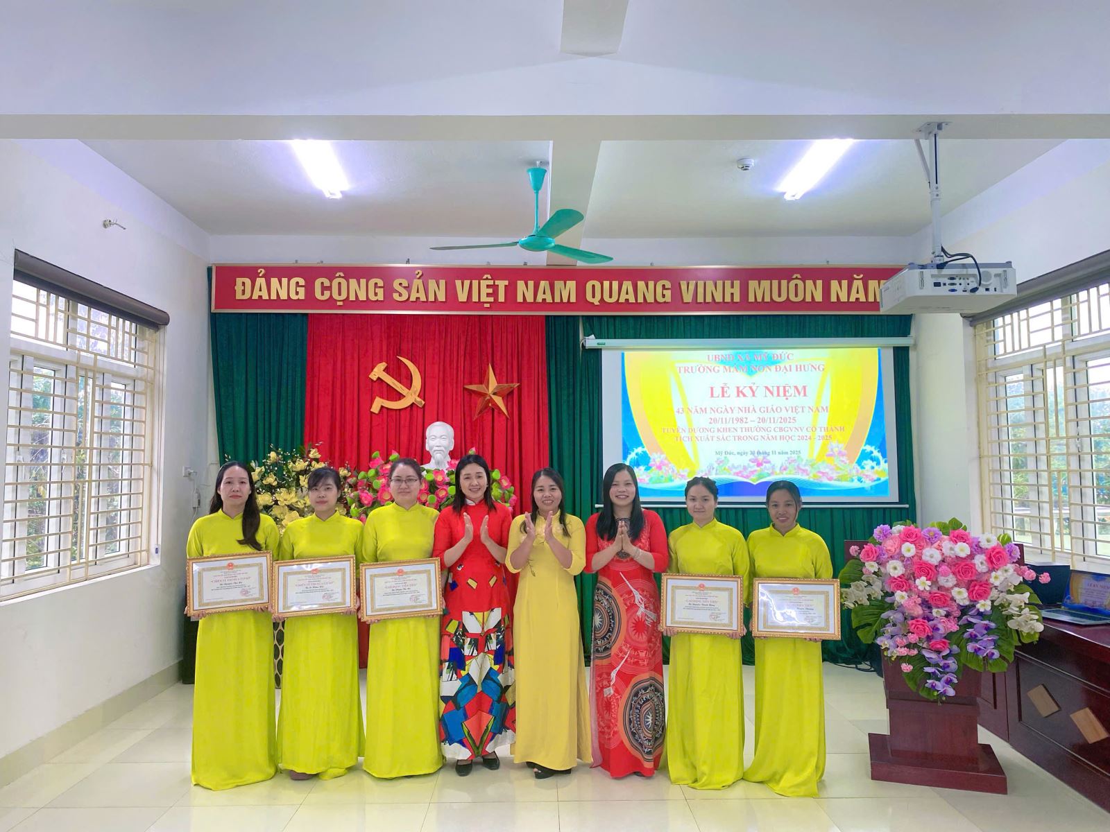 21/11/2025 A- A A+ | Trường mầm non Đại Hưng tổ chức lễ chào mừng ngày Nhà giáo Việt Nam 20/11 Xem Chia s? Hòa chung không khí hân hoan của cả nước hướng về Ngày Nhà giáo Việt Nam (20/11), Trường Mầm non Đại Hưng đã long trọng tổ chức buổi Mít tinh kỷ niệm 43 năm Ngày Nhà giáo Việt Nam (20/11/1982 – 20/11/2025). Đây là dịp để toàn thể cán bộ, giáo viên, nhân viên nhà trường cùng nhau ôn lại truyền thống tôn sư trọng đạo cao đẹp và tri ân những cống hiến thầm lặng của đội ngũ người làm giáo dục. 1. 💖 Tôn Vinh Tấm Lòng Người Gieo Mầm Ước Mơ Buổi lễ diễn ra trong không khí trang trọng và ấm áp với sự tham dự của: • Ban Giám hiệu nhà trường • Toàn thể cán bộ, giáo viên, nhân viên Trường Mầm non Đại Hưng • Đại diện Ban Đại diện Cha mẹ học sinh Phát biểu tại buổi lễ, Bà Nguyễn Thu Hà- Hiệu trưởng, đã ôn lại truyền thống vẻ vang của ngành giáo dục Việt Nam và khẳng định vai trò quan trọng của giáo viên mầm non. Bà nhấn mạnh: “Các cô giáo mầm non chính là những người mẹ thứ hai, những người đặt viên gạch đầu tiên xây dựng nhân cách và trí tuệ cho các con. Mỗi nụ cười, mỗi bước tiến của các con đều là phần thưởng vô giá và là động lực để chúng ta tiếp tục cống hiến.” 2. 🎁 Tri Ân – Ghi Nhận Những Đóng Góp • Tuyên dương và Khen thưởng: Ghi nhận những giáo viên, nhân viên có thành tích xuất sắc trong công tác chăm sóc, nuôi dưỡng và giáo dục trẻ trong năm học vừa qua. • Phát biểu tri ân: Đại diện Ban Đại diện Cha mẹ học sinh đã gửi lời cảm ơn chân thành và những bó hoa tươi thắm, thể hiện sự tin tưởng và tri ân sâu sắc đến tập thể sư phạm nhà trường. 3. 🎨 Những Món Quà Tinh Thần Đầy Ý Nghĩa Phần sôi động và đáng yêu nhất của buổi mít tinh chính là các tiết mục văn nghệ đặc sắc do chính các cô giáo và các bé mầm non biểu diễn: • Tiết mục của giáo viên: Tập thể giáo viên nhà trường đã thể hiện ca khúc : Người gieo mầm xanh, Bài ca người giáo viên nhân dân, mang đến một không khí vừa xúc động, vừa nhiệt huyết. 🎉 Lời Hứa Tiếp Nối Buổi Mít tinh kỷ niệm Ngày Nhà giáo Việt Nam 20/11 của Trường Mầm non Đại Hưng Trừ đã khép lại trong niềm hân hoan và sự ấm áp. Đây không chỉ là hoạt động tri ân mà còn là dịp để mỗi cán bộ, giáo viên tiếp thêm động lực, củng cố ý chí để không ngừng nỗ lực, nâng cao chuyên môn, hết lòng vì sự nghiệp “trồng người”. Tập thể Trường Mầm non Đại Hưng Trừ xin gửi lời chúc tốt đẹp nhất đến tất cả các nhà giáo, chúc các thầy cô luôn dồi dào sức khỏe, hạnh phúc và gặt hái được nhiều thành công hơn nữa! Dưới đây là hình ảnh của buổi lễ Tập tin đính kèm Tải về
